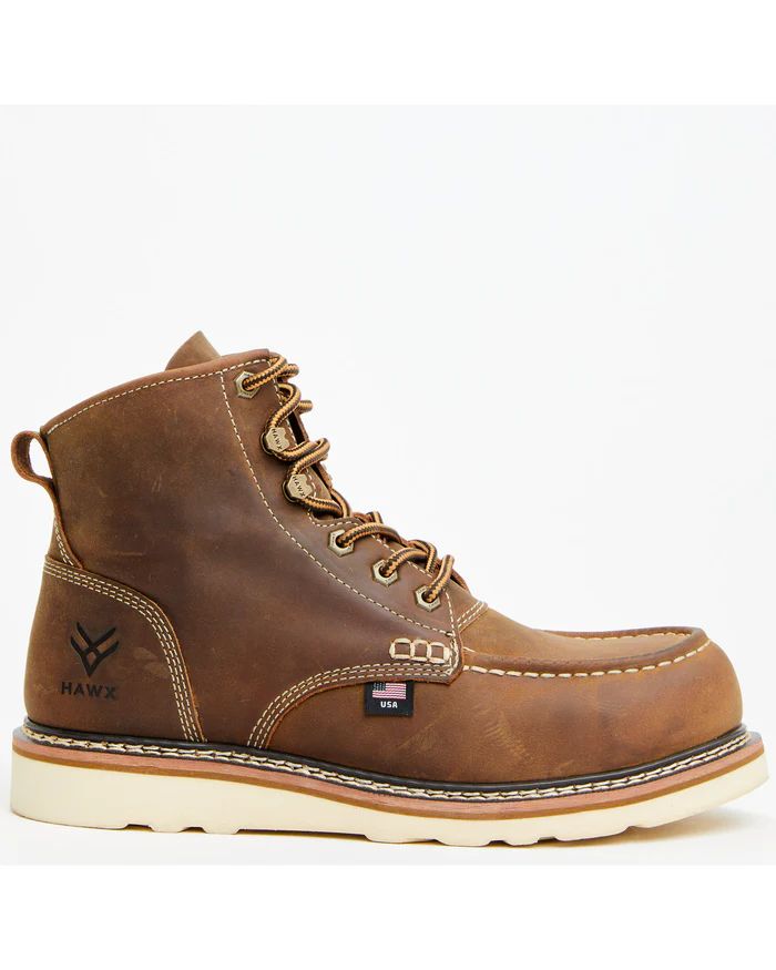 - Discount Hawx Men's 6" USA Pitstop Wedge Redesigned Work Boots - Soft Toe | Brown