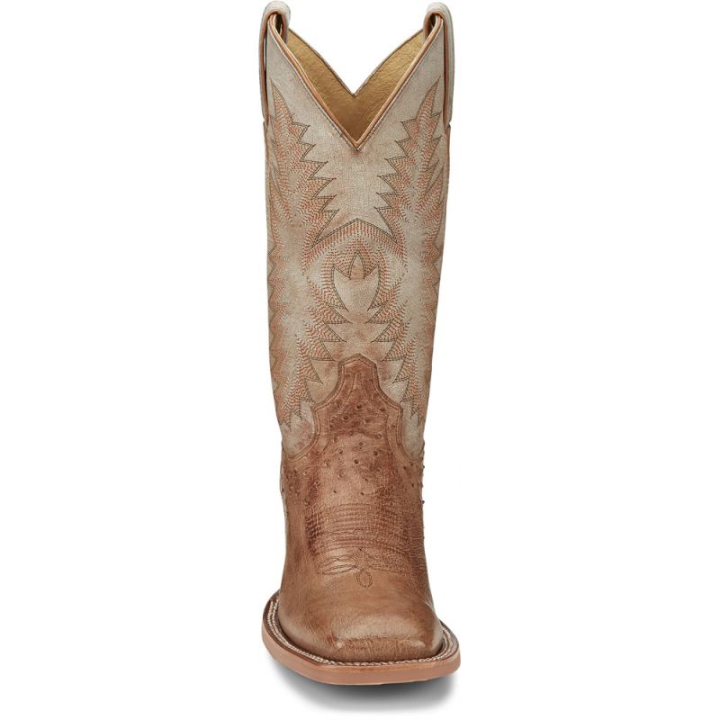 This wide square toe boot features a smooth ostrich foot in a timeless vintage tan that's echoed in the stitching on the ivory cowhide shaft. The removable orthotic insole provides you with comfort and support, and the rubber outsole provides flexible durability in every step.