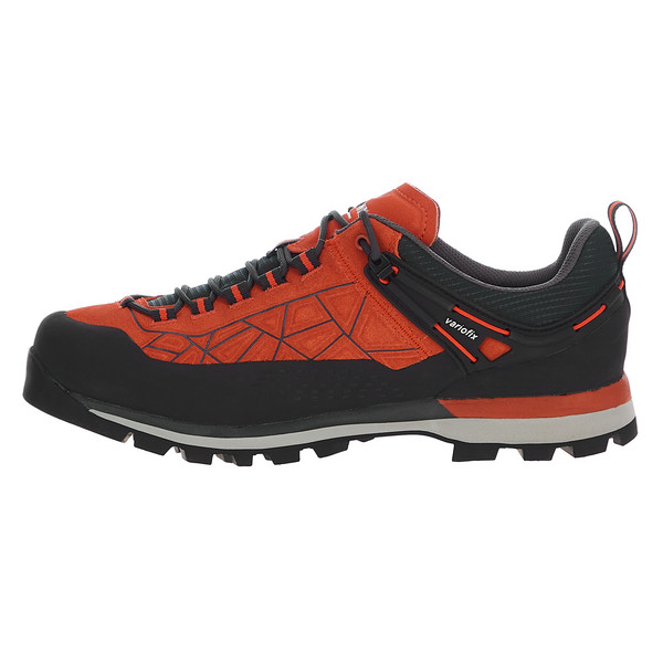 The fact that your foot stays securely in the shoe isn't just thanks to the climbing lacing.The low shoe is also equipped with the Variofix system.A thin, yet extremely durable steel cable runs around the heel, keeping it in place even on very steep climbs.Weather protection is also provided, as the Literock Free features a waterproof yet breathable Gore-Tex membrane.The necessary robustness is also ensured: the suede is protected by a circumferential rubber ridge.This means that even missteps on rough terrain and sharp-edged rock are no problem for the high-quality material.
