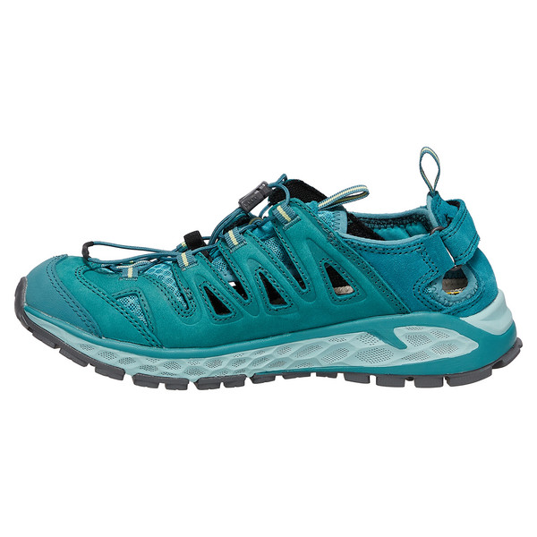 The shoe's upper construction is also impressive.Durable nubuck leather is used here, which can withstand even the toughest wear.This allows you to wear the sandal even when trekking over hill and dale.To further enhance breathability, the leather is complemented in some places by highly breathable mesh fabric.