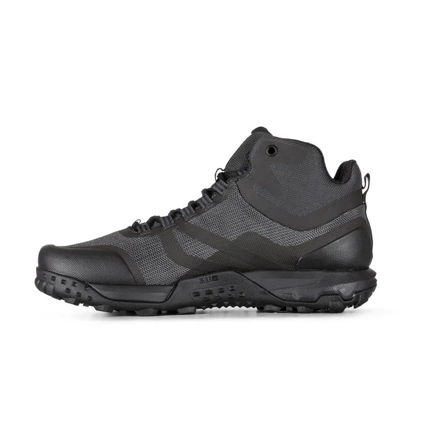 This is the 5.11 A/T Mid. That's mid-height, not mid-night, though it will find favor on that shift to be sure. Featuring 3D molded TPR toe and heel protection, a welded/mesh upper, and high performance, high traction outsole, the All Terrain Load Assistance System (A.T.L.A.S.) will mitigate the rigors of a heavy load bearing job (and in no small way, either). The mids were developed to work with your "work weight". Work longer, with less stress even when you're loaded down. Explore the 5.11 A/T Series.