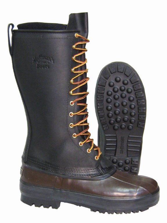 Hoffman's exclusive Air-grip traction sole was designed to keep you on your feet in slick conditions. A removable 9mm felt liner with a moisture-absorbing polypropylene backing is added for extra insulation. Hoffman's Made in Idaho leather uppers are hand-made with 7-7? oz. oil-tanned leather and are designed to conform to your leg for added support. Solid brass hardware and no-nonsense lacing completes this boot. The Hoffman Double Insulated Mountaineer is an excellent choice for the outdoorsman needing a warmer boot during periods of cold temperatures or low activity.