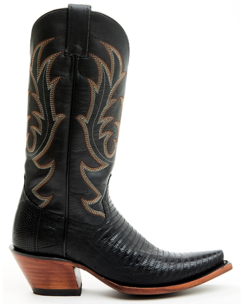 Distinctive Material: Featuring a luxurious lizard vamp paired with a black shaft adorned with intricate western stitching, this combination offers an exotic look that sets you apart from the ordinary.
