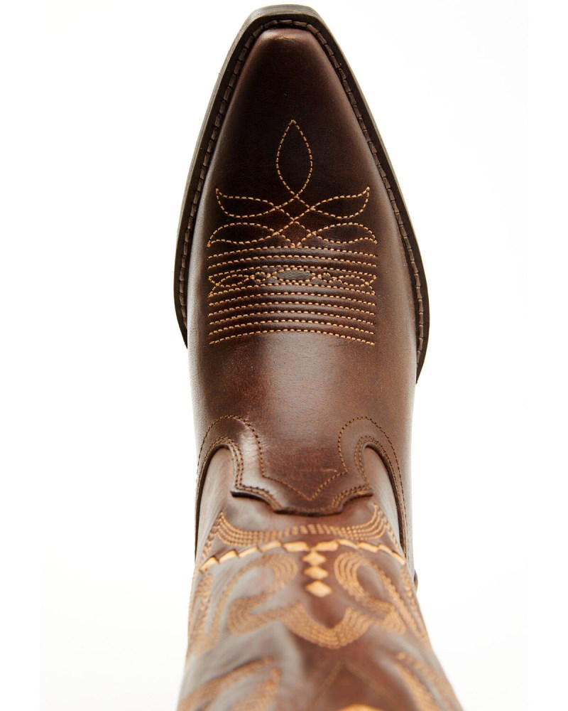 - Solid brown design with western stitching