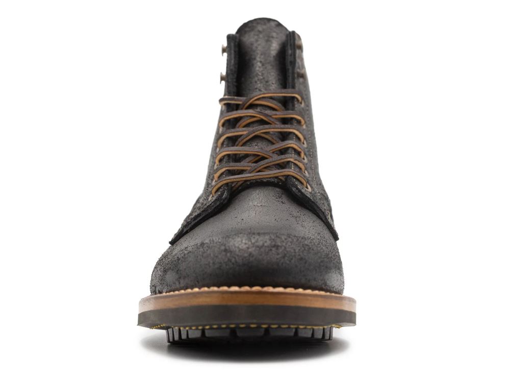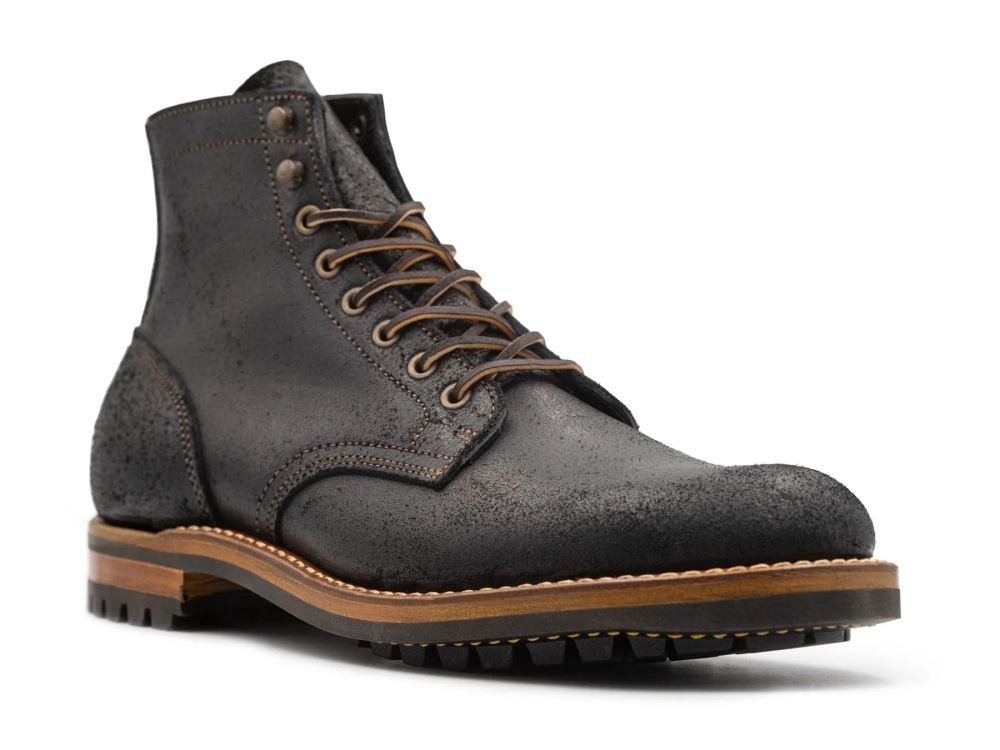 Seidel's Black Oiled Rough Out is a chrome-tanned leather that features a hefty use of oil in the tanning process. This leather is perfect for footwear: tough, supple, beautiful, and very weather-resistant. Not to be confused with the similarly named Black Oil-Tanned Rough Out, a drier, stiffer leather we've used in the past. If you can't get enough about Black Oiled Rough Out, read our Leather Notes about it here for more details.
