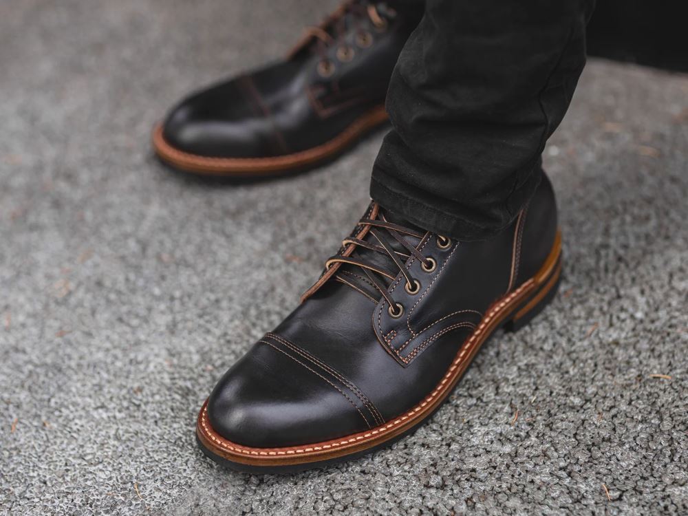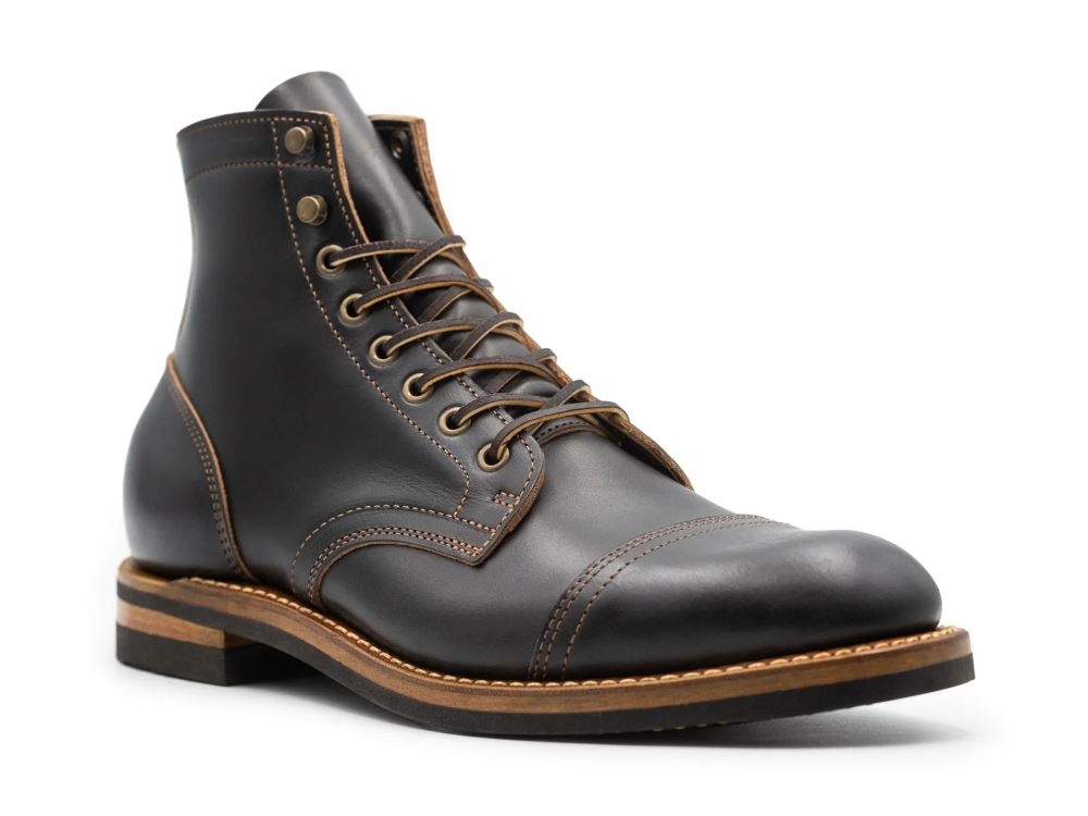 This new Charcoal Double Shot is a near black that upon closer inspection has gray undertones. While a more refined, smooth leather, we've made no concessions in weight, and like all of our releases going forward, this leather comes in at over 6 oz resulting in a gorgeous, hard-wearing pair of boots.
