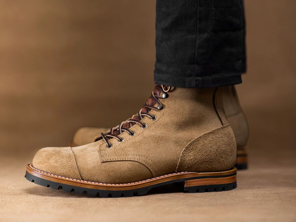 This is military-spec leather, notorious for its rugged durability in all terrains. You might wonder what does military-spec even mean, and in this case it primarily means this leather is tanned to a government-required level of waterproofness. Tested in some of the more extreme environments across the globe, this leather is easy to wear, and easier to take care of. In terms of color, this is a light tan color, that will look on the warmer side of the color spectrum in full sun.