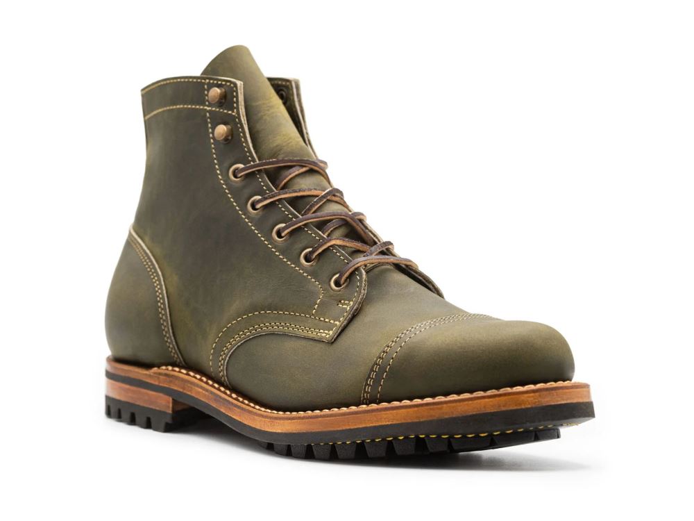 Predator is a rugged, durable leather that takes a beating without getting banged up. A rich olive green color, these boots pair as well with khakis as they do with denim. The Predator tannage was developed by Horween specifically for boot building, and true to its purpose, is an excellent partner for our boots.