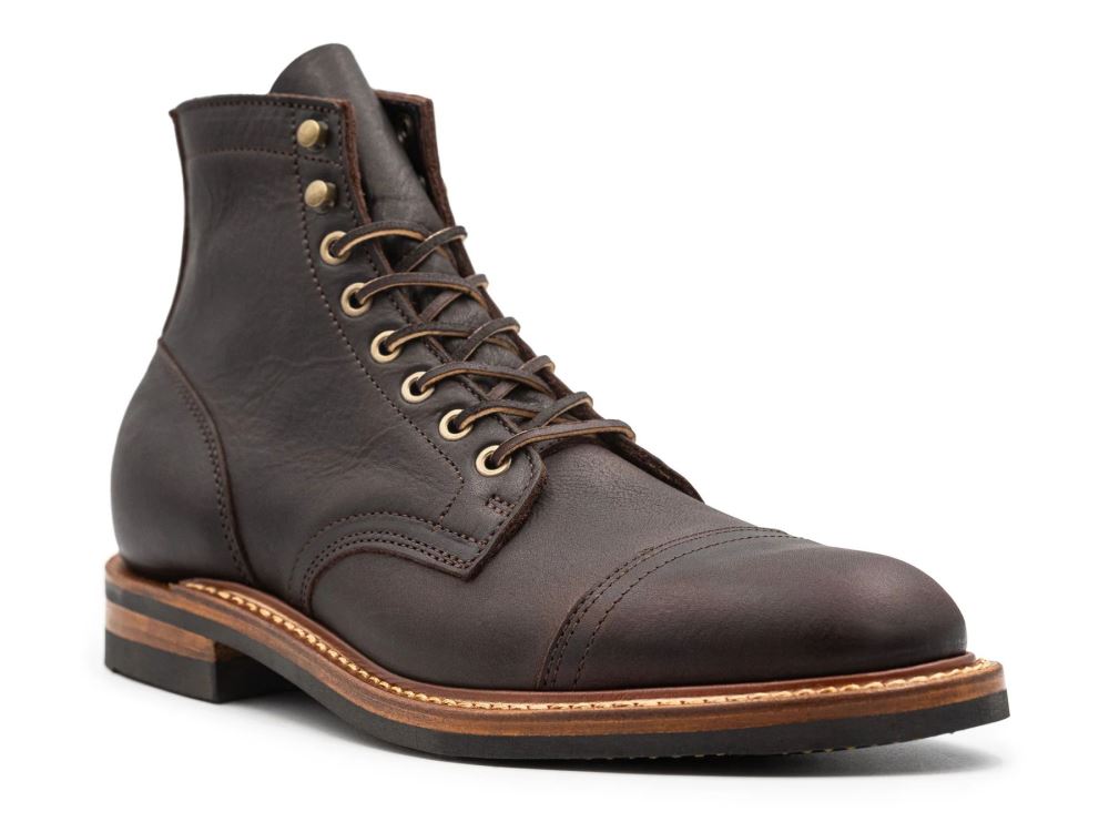 Snakebite is a full grain, pull-up rich natural leather from Seidel Tanning that has a robust vegetable retan. To say "pull-up rich" is an understatement, as this leather is loaded up with oils and waxes, and results in boots that look better with age.