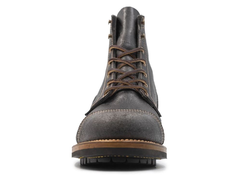 Crazy Cow leather is from Charles F. Stead tannery in Leeds, UK. It features natural textures of the flesh side of the hide. Finished with a wax blend for a unique aesthetic featuring a depth of color and rugged texture, but with an extra dose of gloss in comparison to Rambler leather. When it comes to color, Overcast is a pull-up rich deep gray, with lighter highlights, and nearly colorless