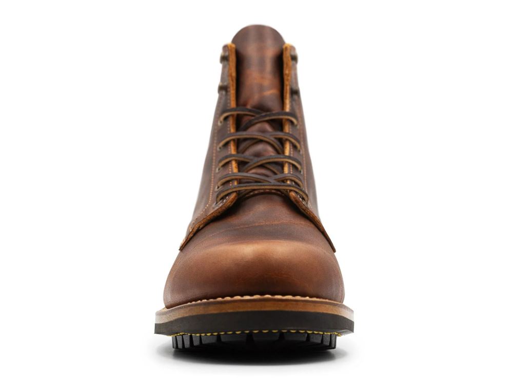 Snakebite is a full grain, pull-up rich natural leather from Seidel Tanning that has a robust vegetable retan. To say "pull-up rich" is an understatement, as this leather is loaded up with oils and waxes, and results in boots that look better with age.