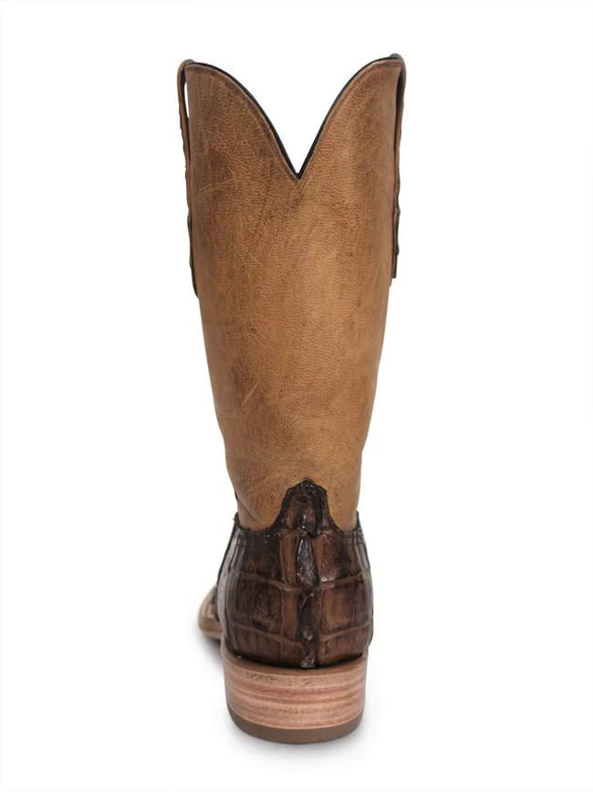 - New Collection Black Jack Men's Burnished Cigar Full Quill Ostrich Square Toe Boots - Brown,Tan