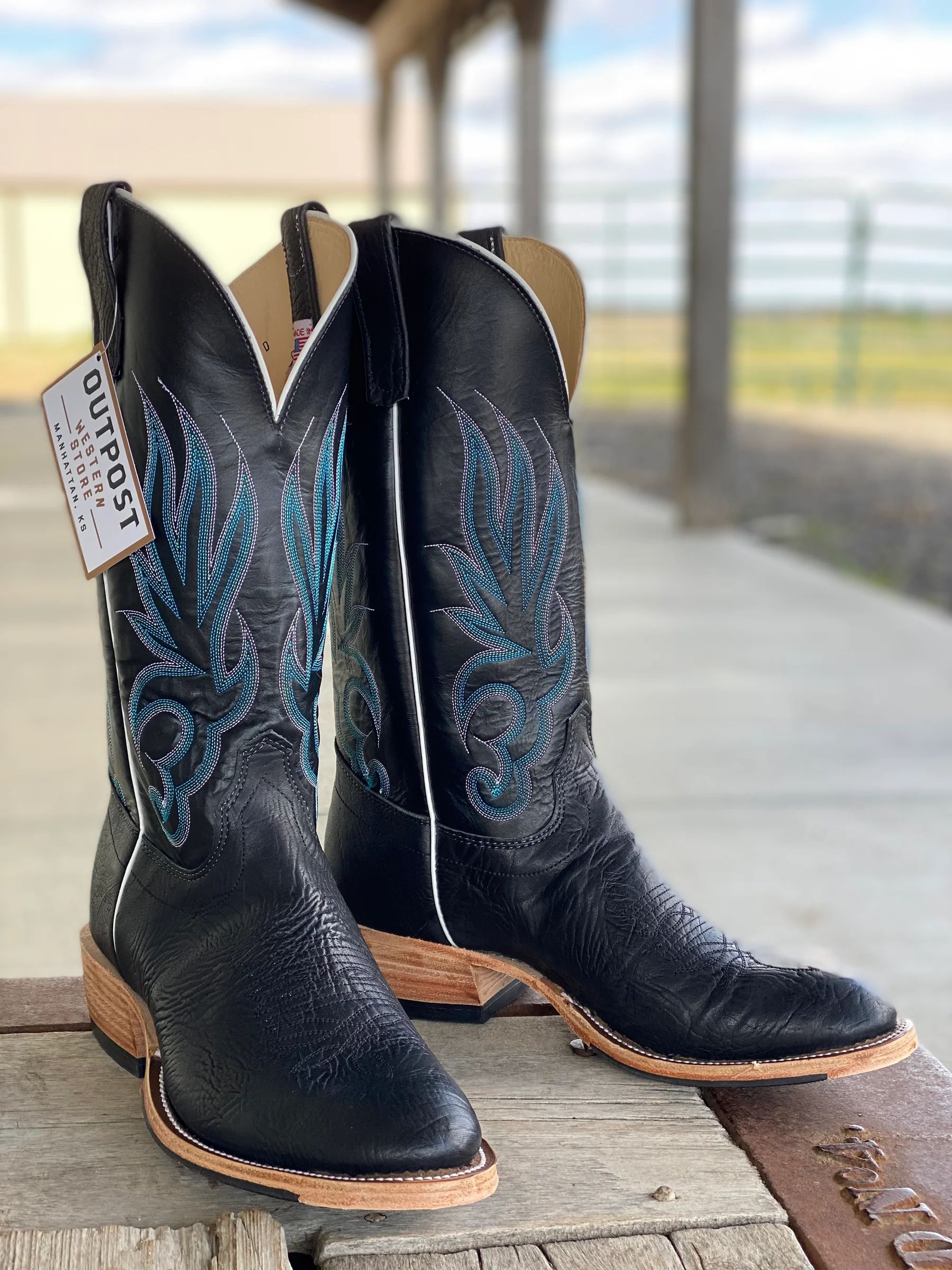 - Olathe Europe Free Delivery Black Oiled Shoulder KS Toe Boots - Black/Purple