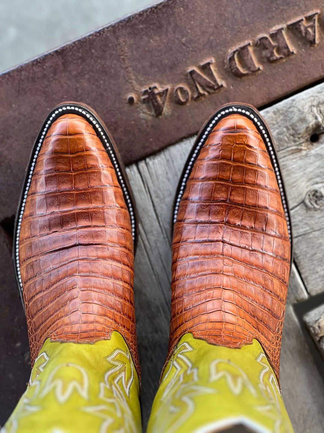 - Olathe Europe Free Delivery Natural Brahma Bison O Toe Tall Top Boots - Tan/Red