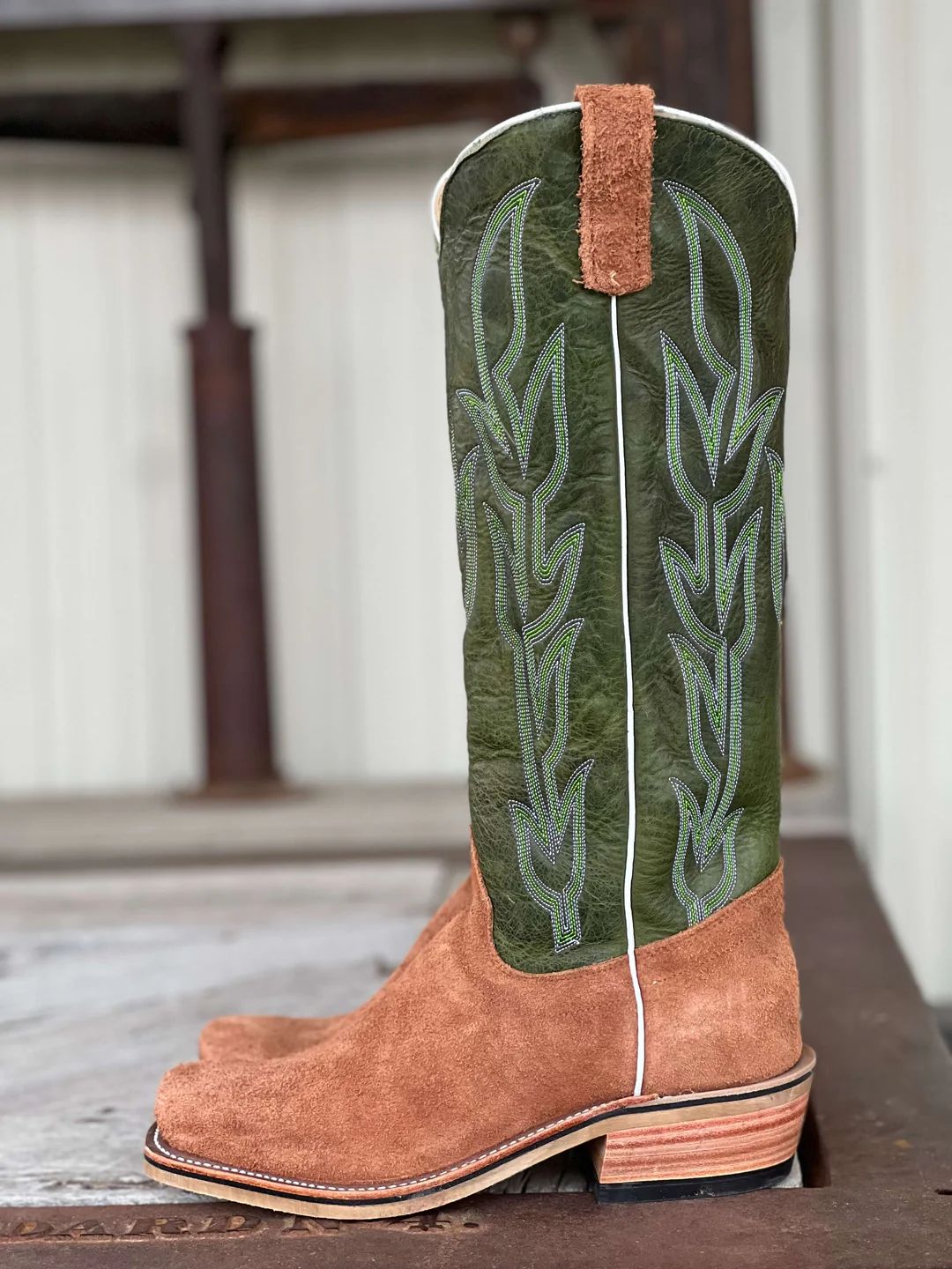 - Olathe Europe Free Delivery Teak Crazyhorse Roughout Boots - Tan/Green