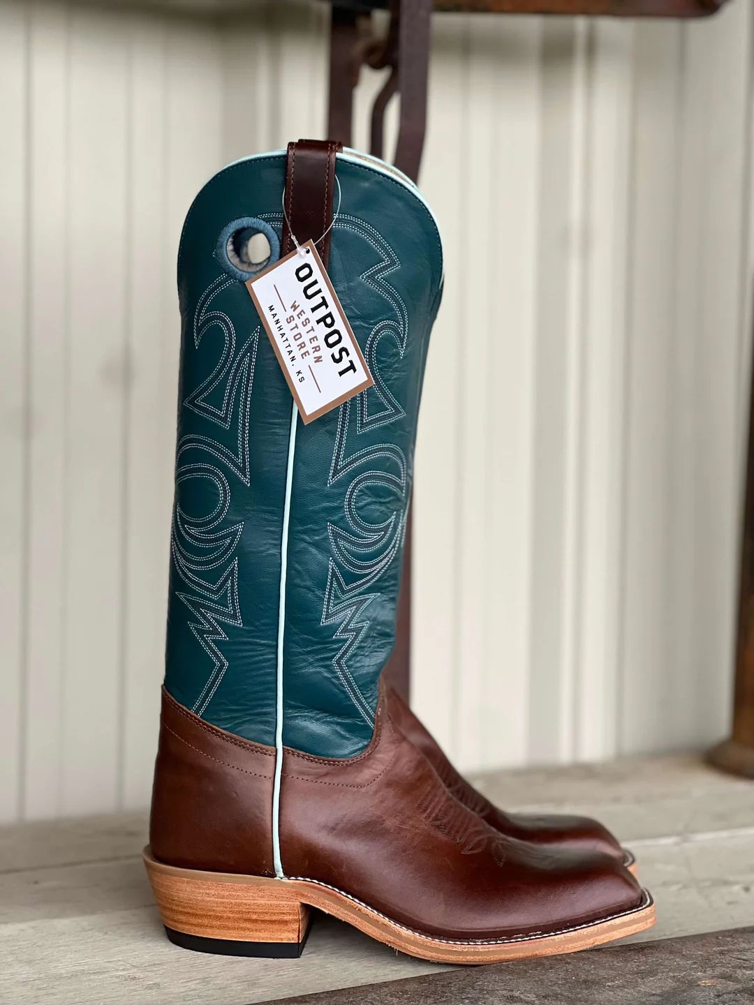 - Olathe Europe Free Delivery Distressed Bison Boots - Tan/Blue