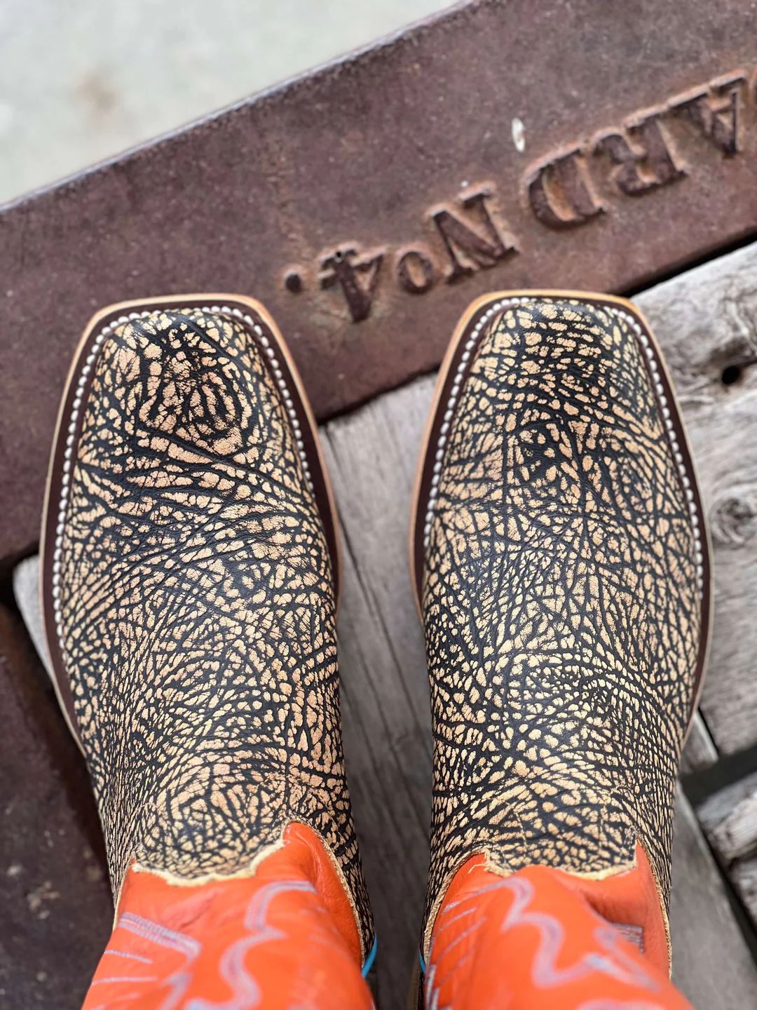 - Olathe Europe Free Delivery Natural Brahma Bison/Sangria Boots - Tan/Maroon