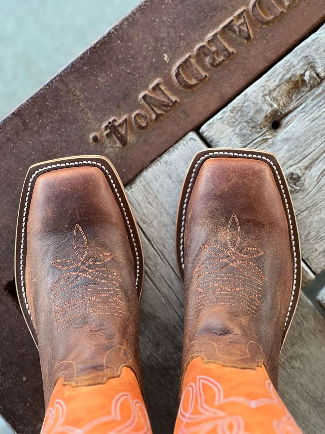 - Olathe Europe Free Delivery Chocolate Sow DayHand Boots - Brown/Turquoise