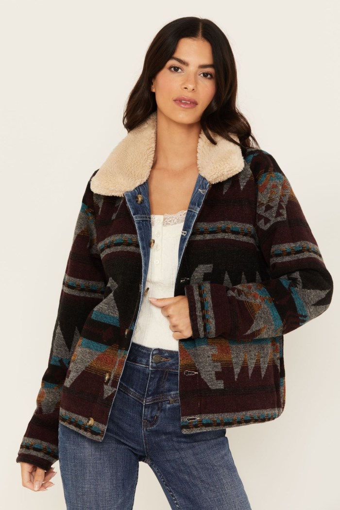 - Side B: Multicolored Southwestern print