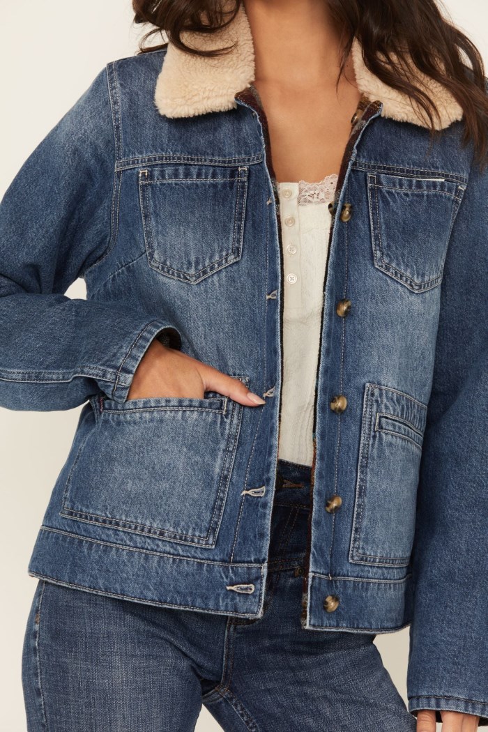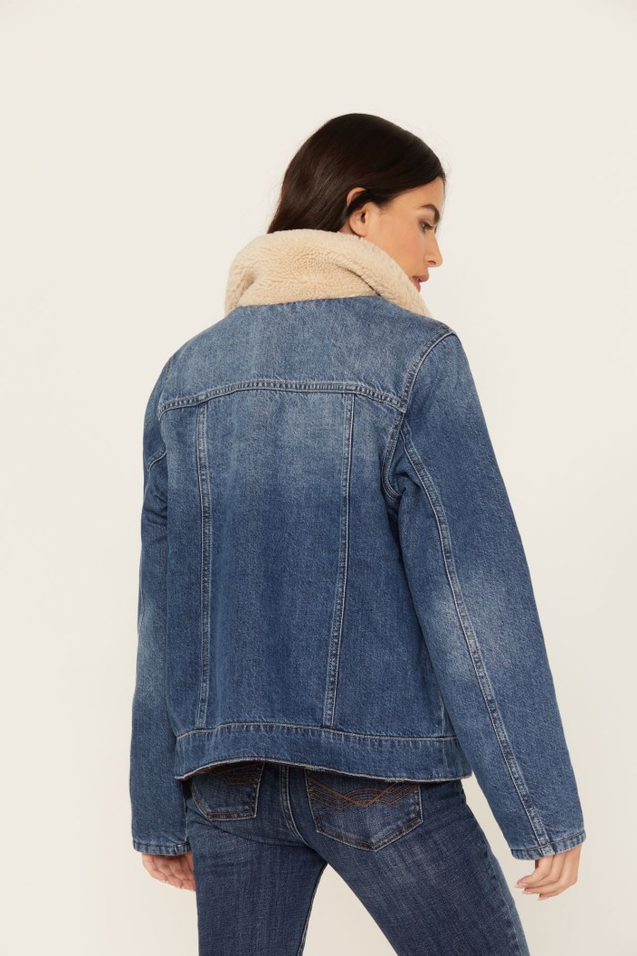 - Side A: Medium wash denim