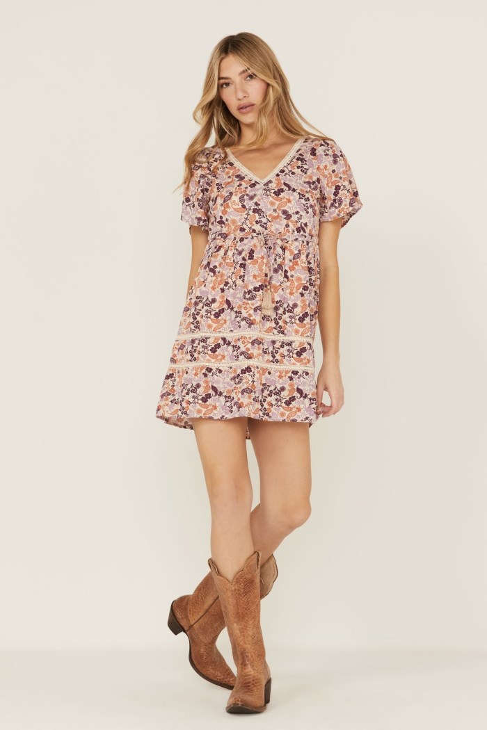 - Allover lavender floral pattern