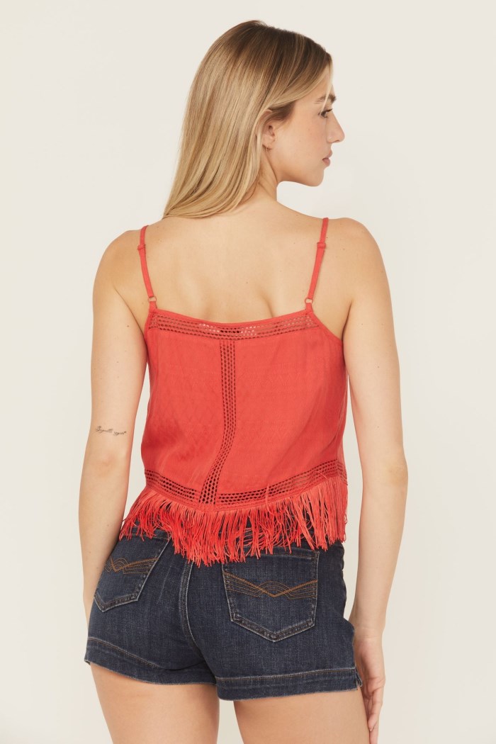 - Promotion Idyllwind Women's Briarwick Jacquard Print Fringe And Lace Tank Top | Dark Orange
