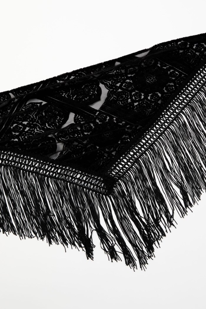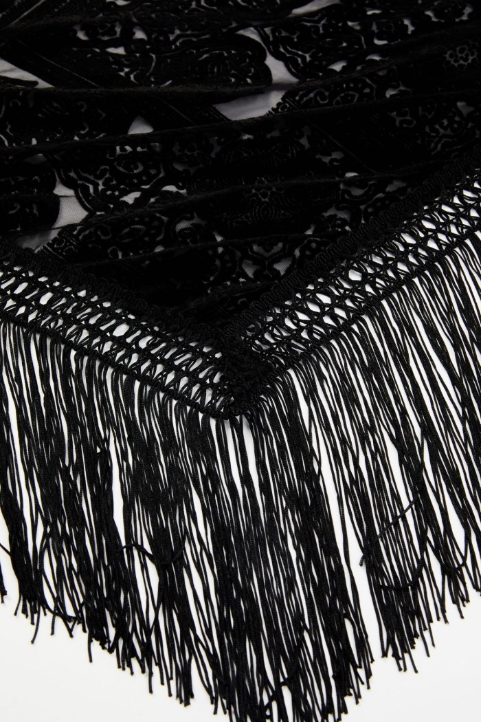 - Solid black with burnout velvet design throughout