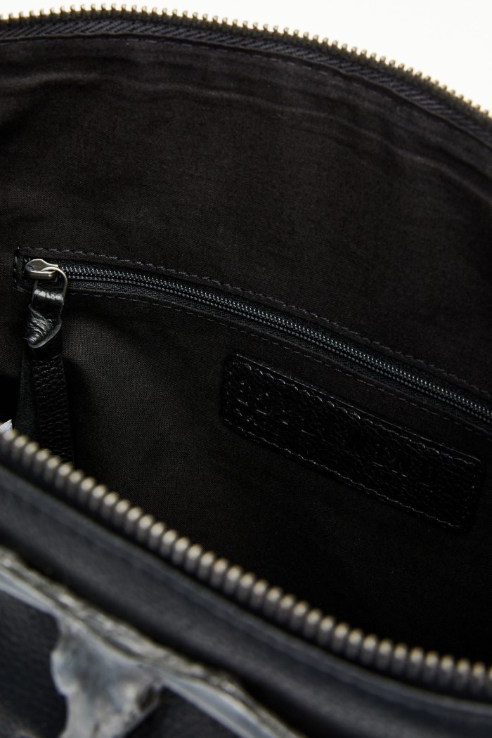 - 2 slip pockets on interior and 1 zippered pocket