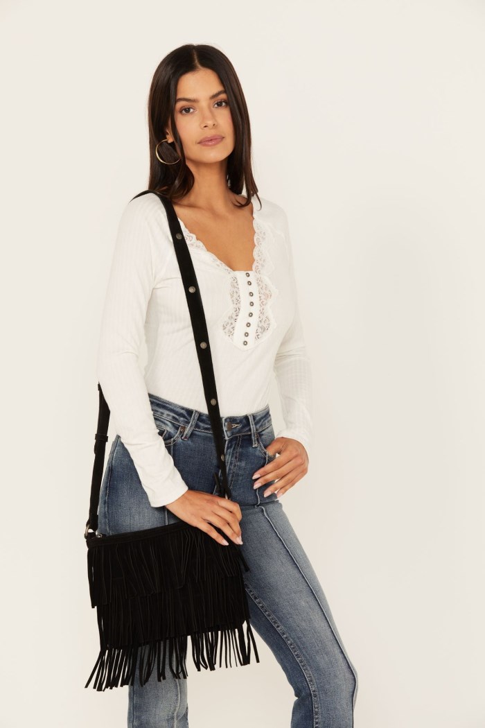 - Three tiered fringe design on front