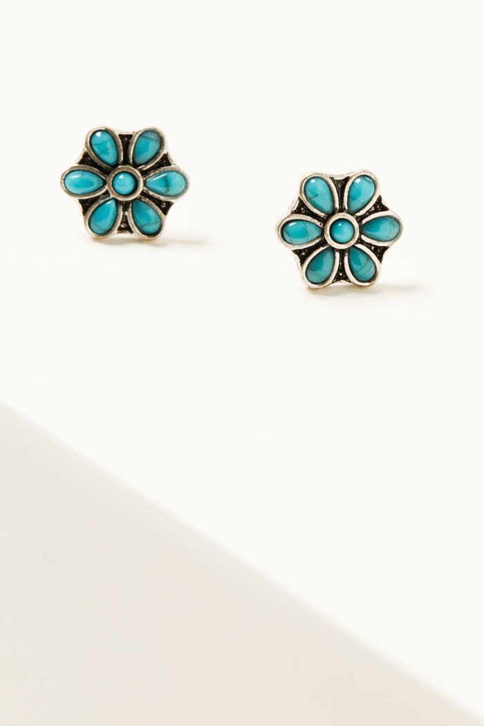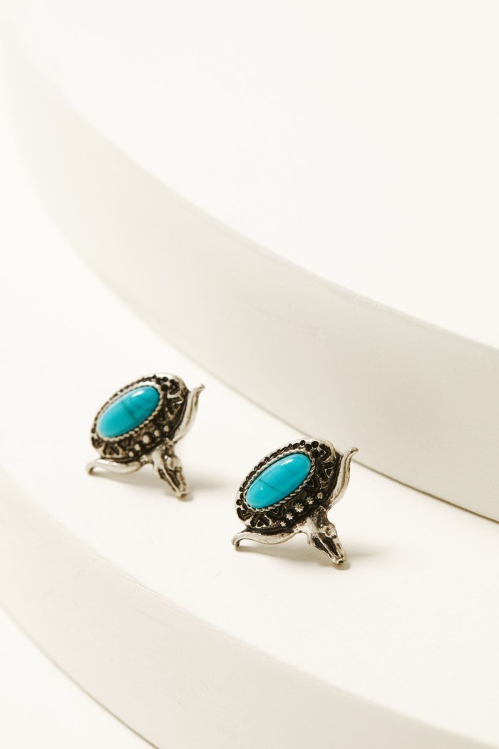 - Concho, flower, and steerhead studded earrings