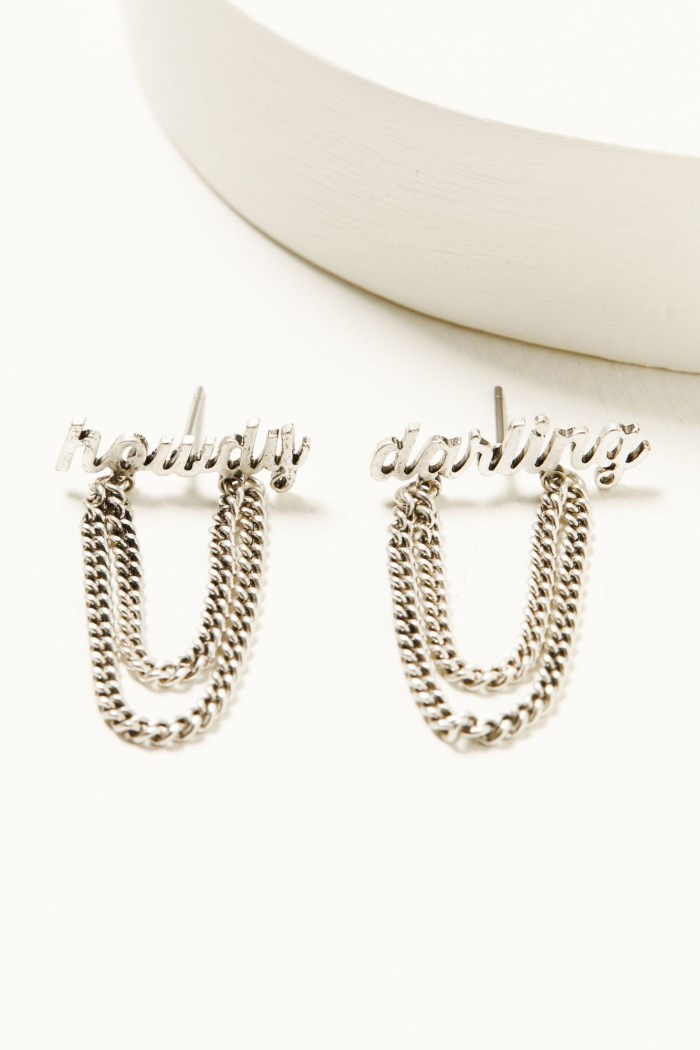 - "Howdy" chain studded earrings