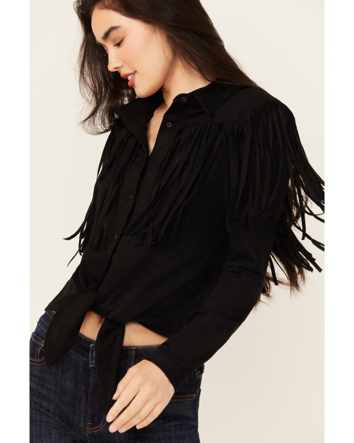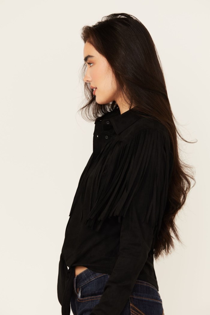- Promotion Idyllwind Women's Walnut Studded Fringe Faux Suede Vest | Black