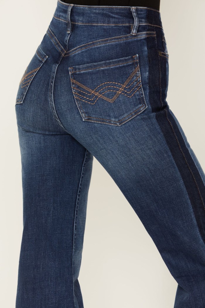 - Dark medium wash with dark wash shadowing on sides