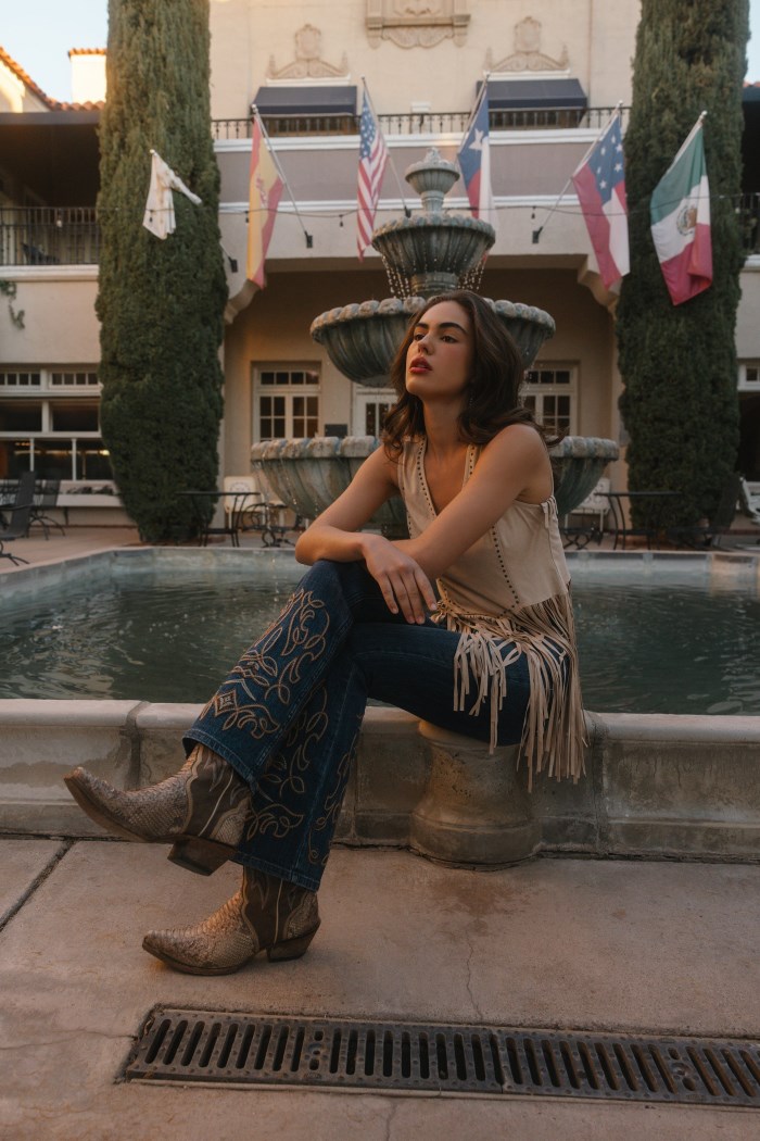 - Boot stitching on front and back of leg