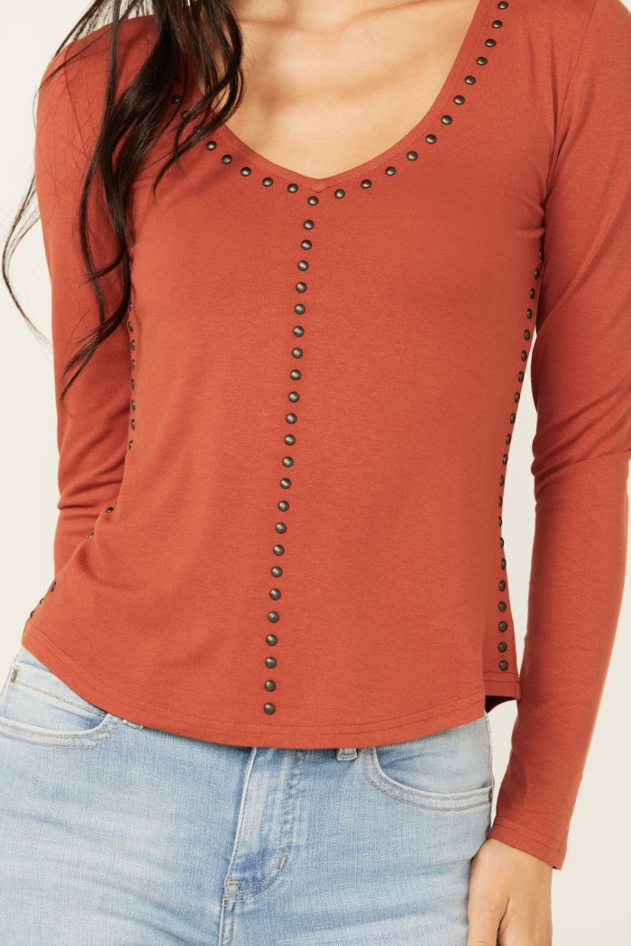 - Bronze-studded accents on front, sides, and neckline