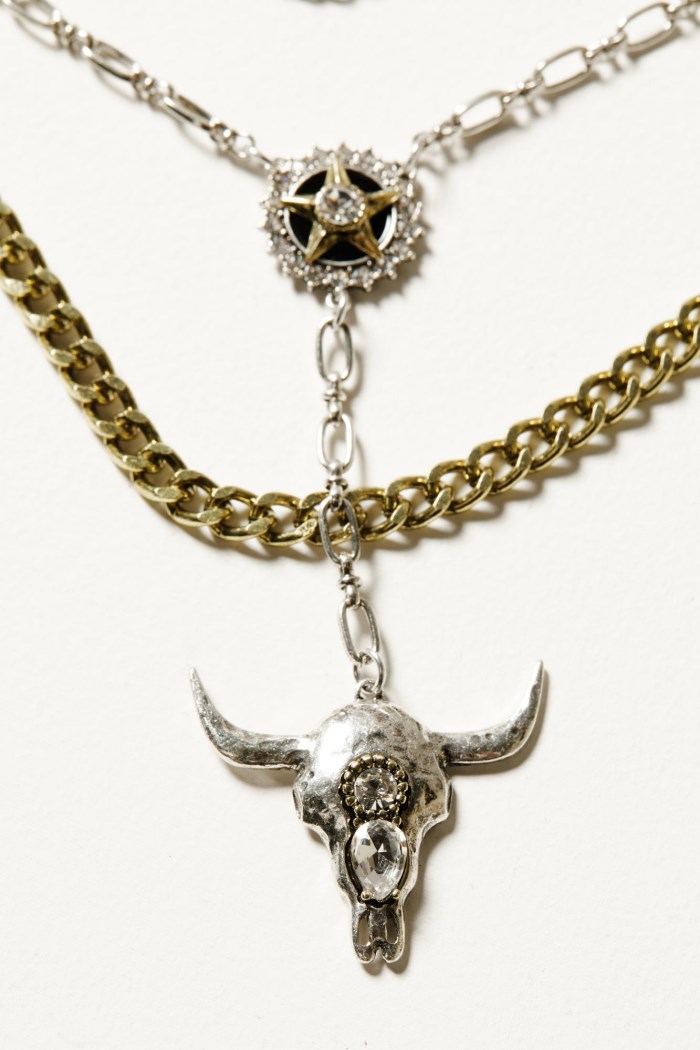 - Silver-toned chain link necklace with dangling steer head