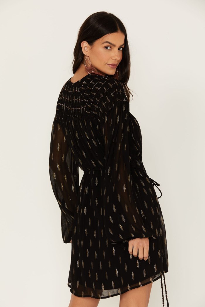 - Sheer black fabrication with metallic silver and gold accents