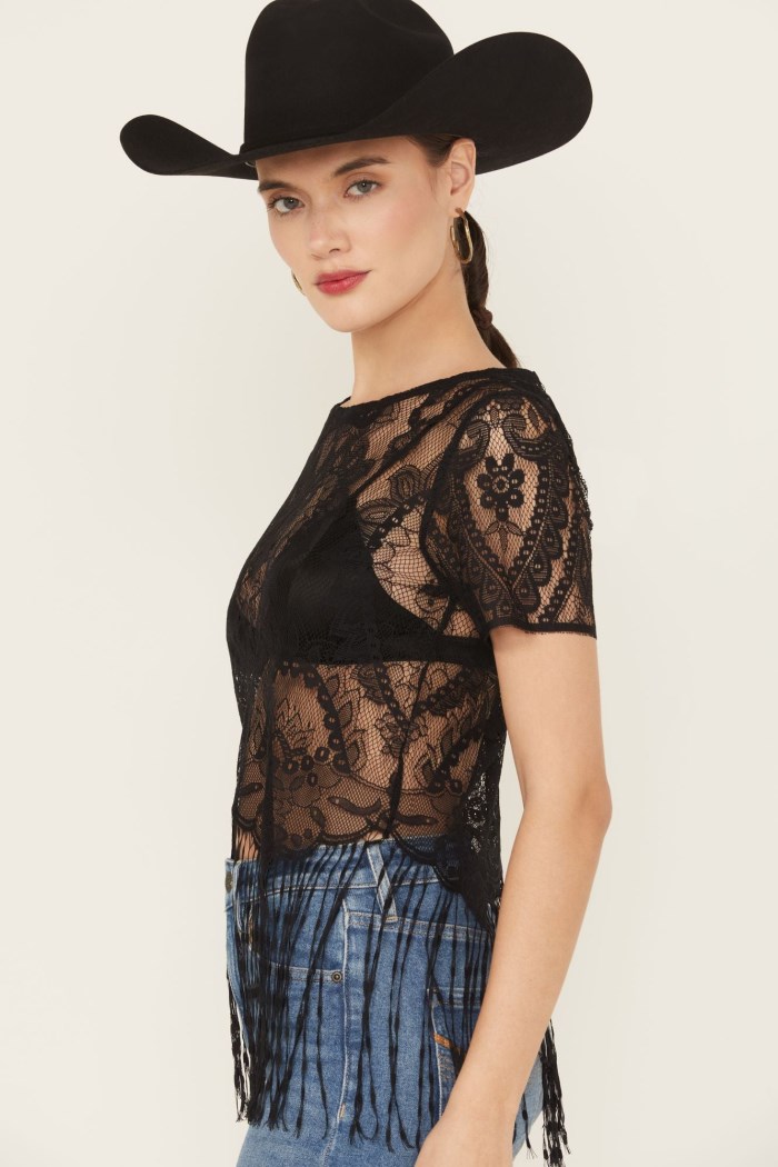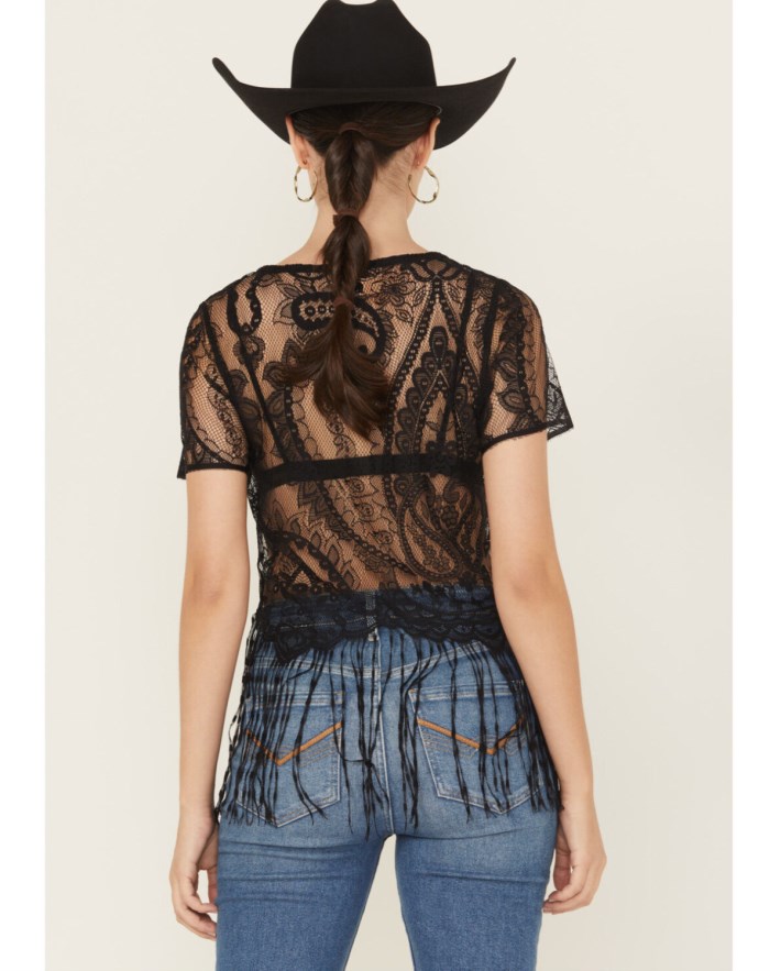 - Fringe accents on hem
