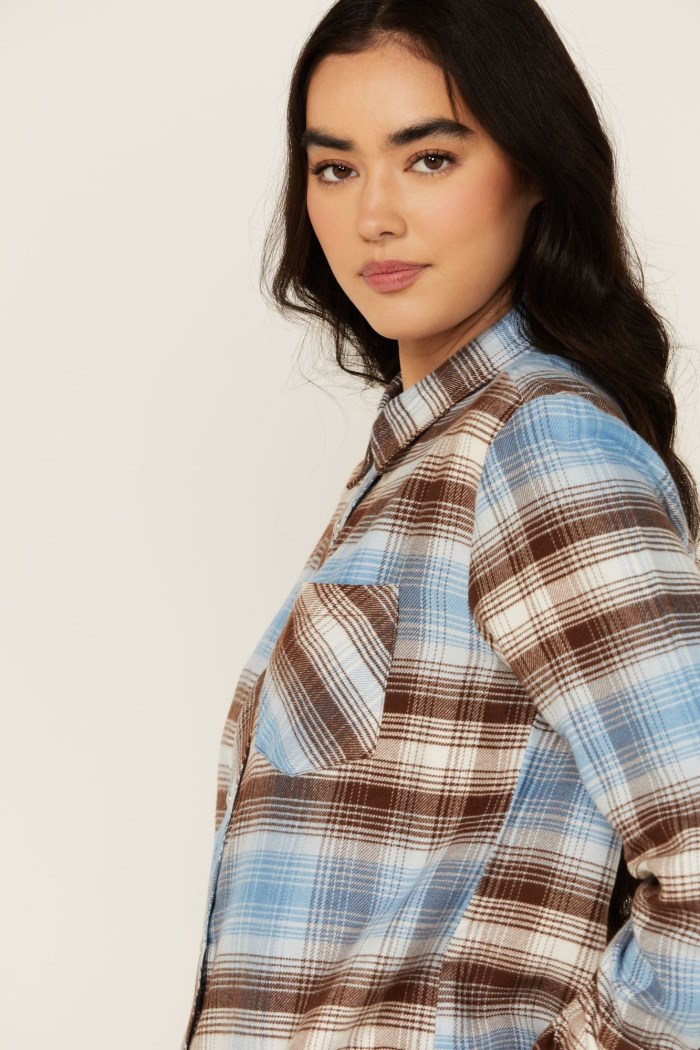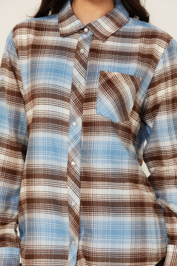 - Blue and brown plaid print