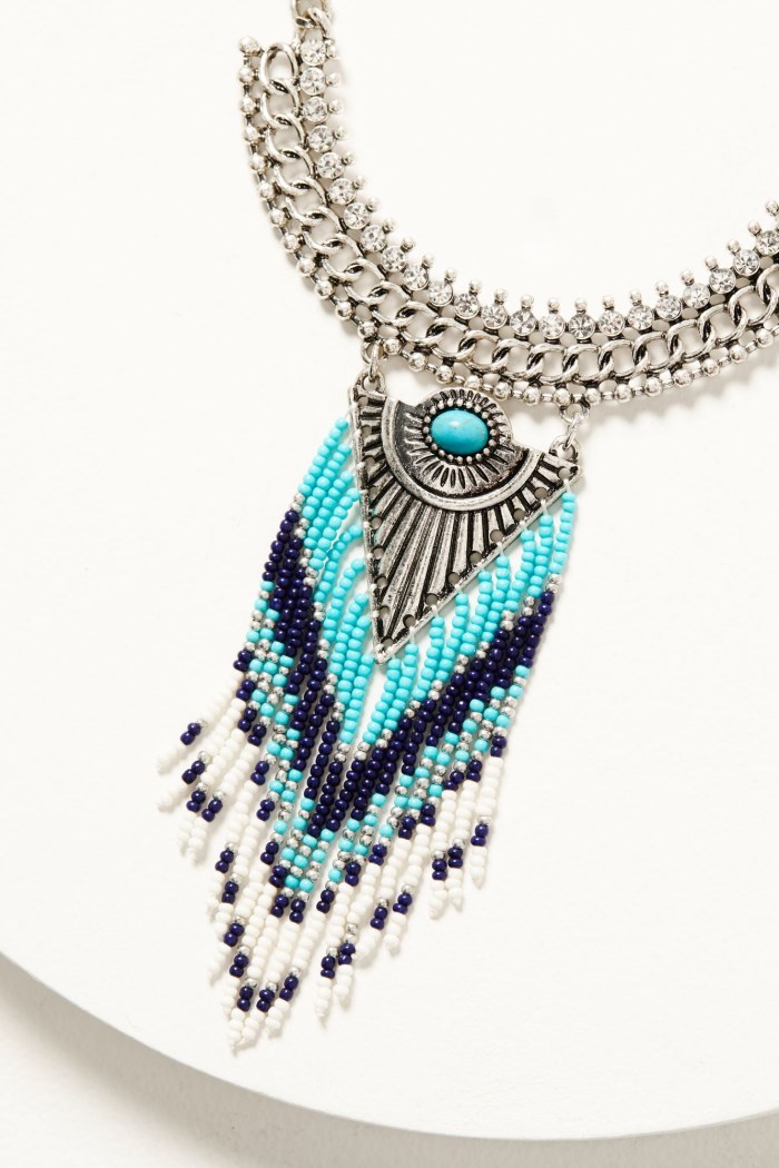 - Multicolored, chevron-motif beaded fringe oversized pendant