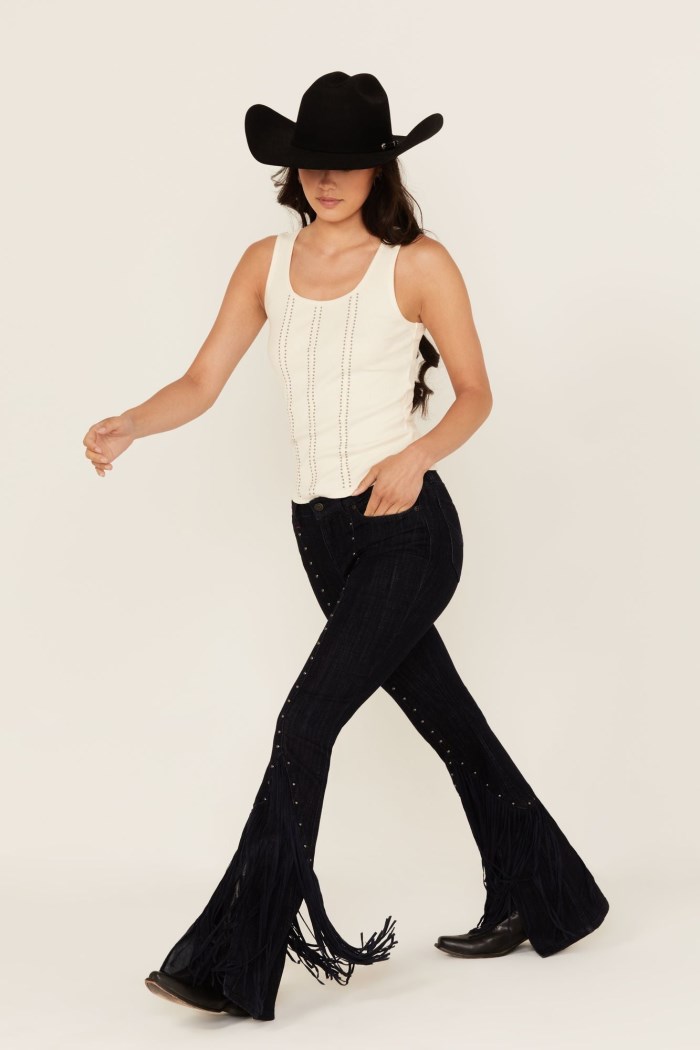 - Promotion Idyllwind Women's Hadley Dark Wash High Rise Embellished Flare Stretch Denim Jeans | Dark Wash