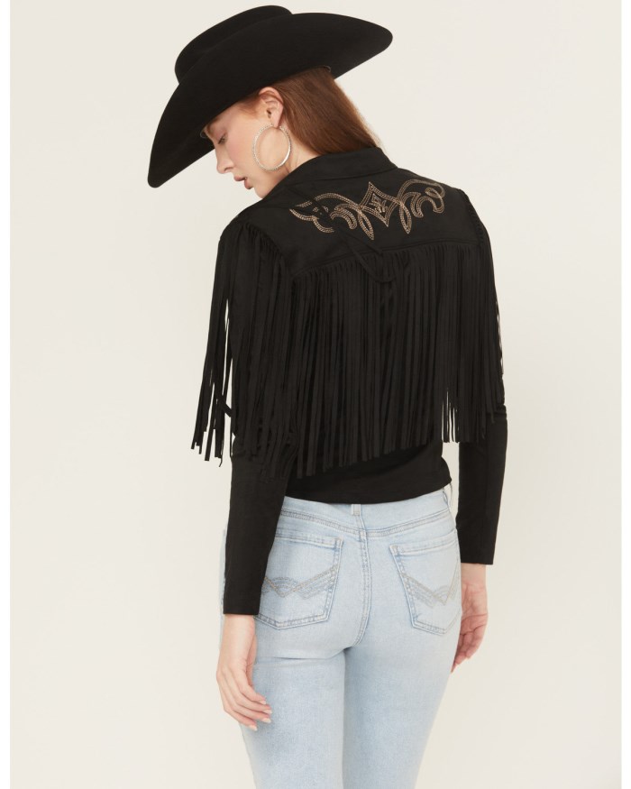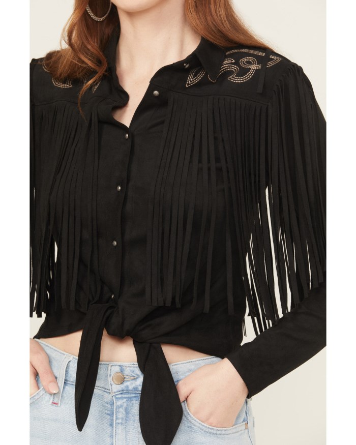 - Fringe accent on front, back, and shoulders