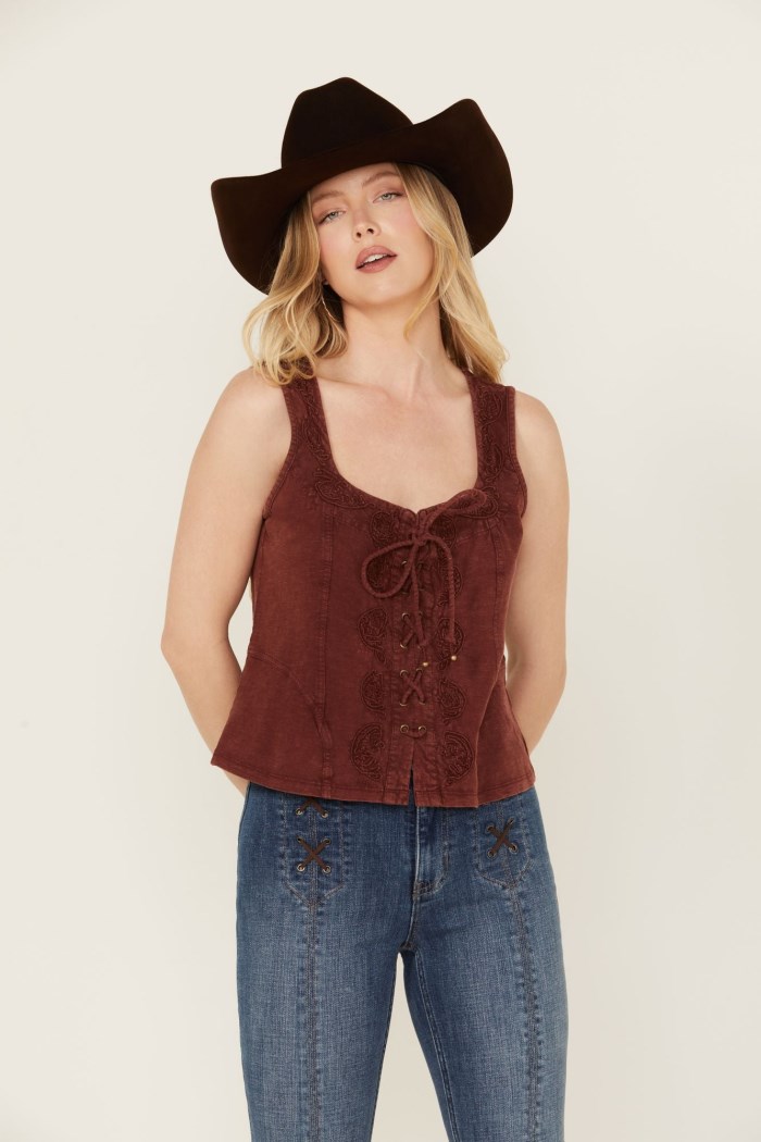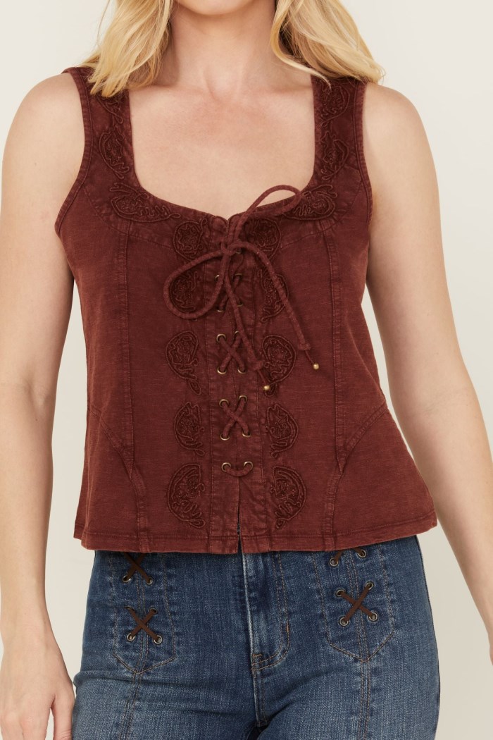- Promotion Idyllwind Women's Rouge Paisley Print Lace Up Top | Dark Blue