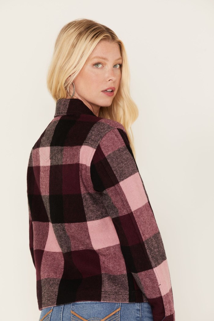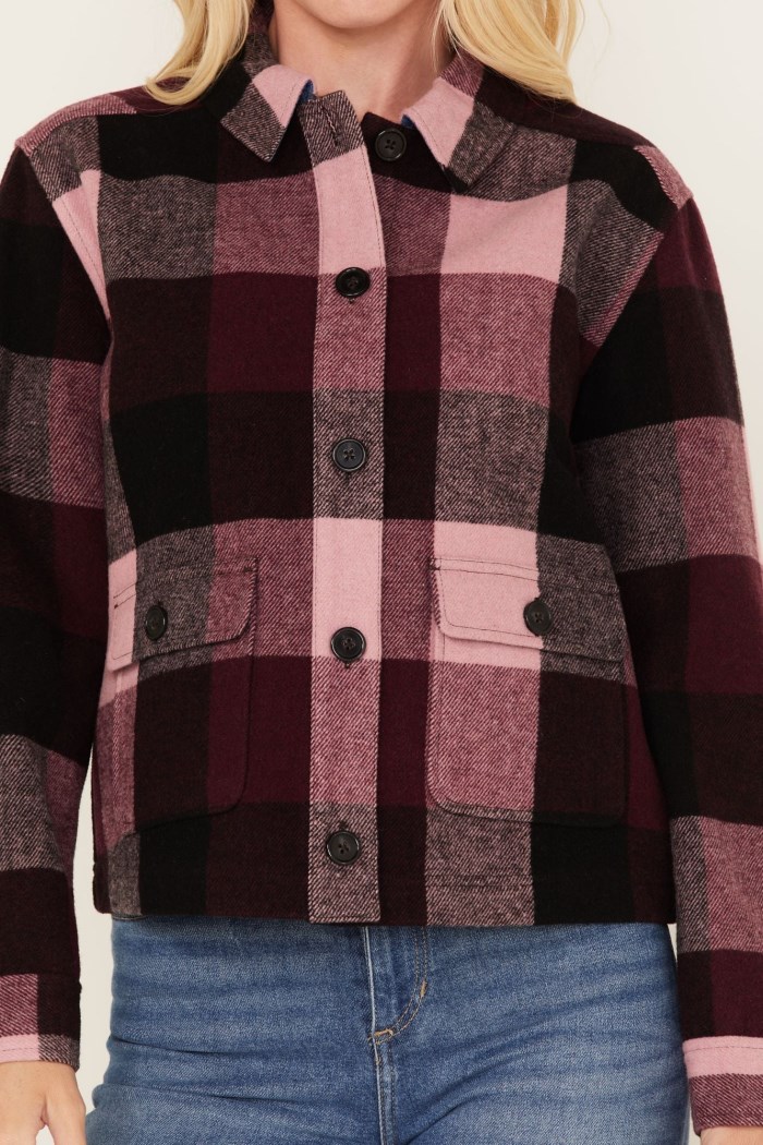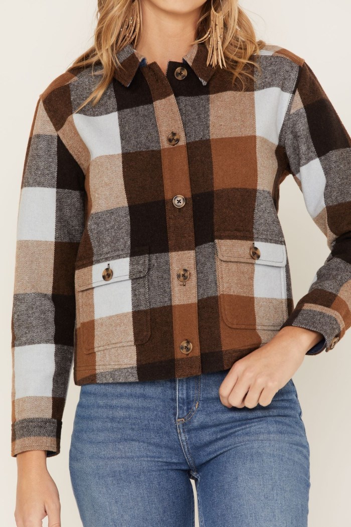 - Plaid print with chambray lining