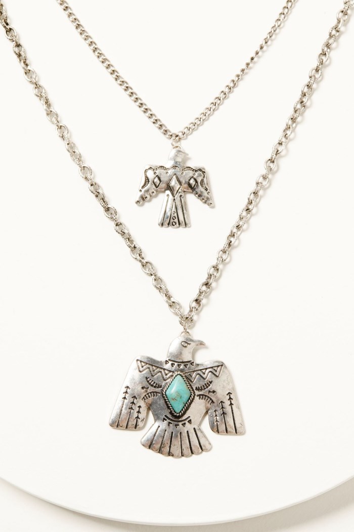 - Small and large thunderbird pendant with turquoise-toned diamond stone on large thunderbird