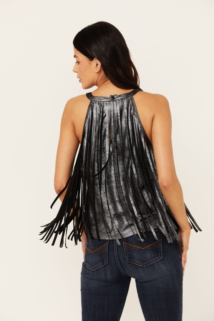 - Promotion Idyllwind Women's Stafford Fringe Faux Suede Cropped Tank | Black