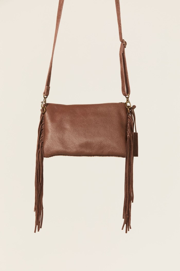 - Brown fringe accent on sides