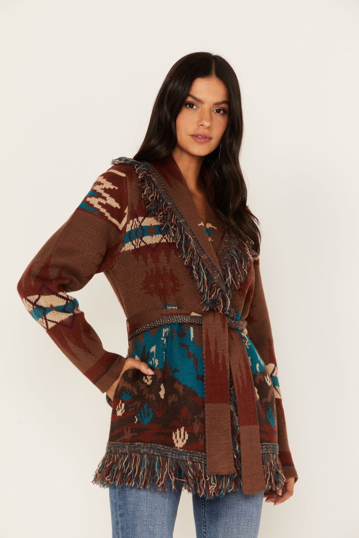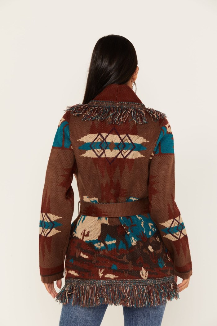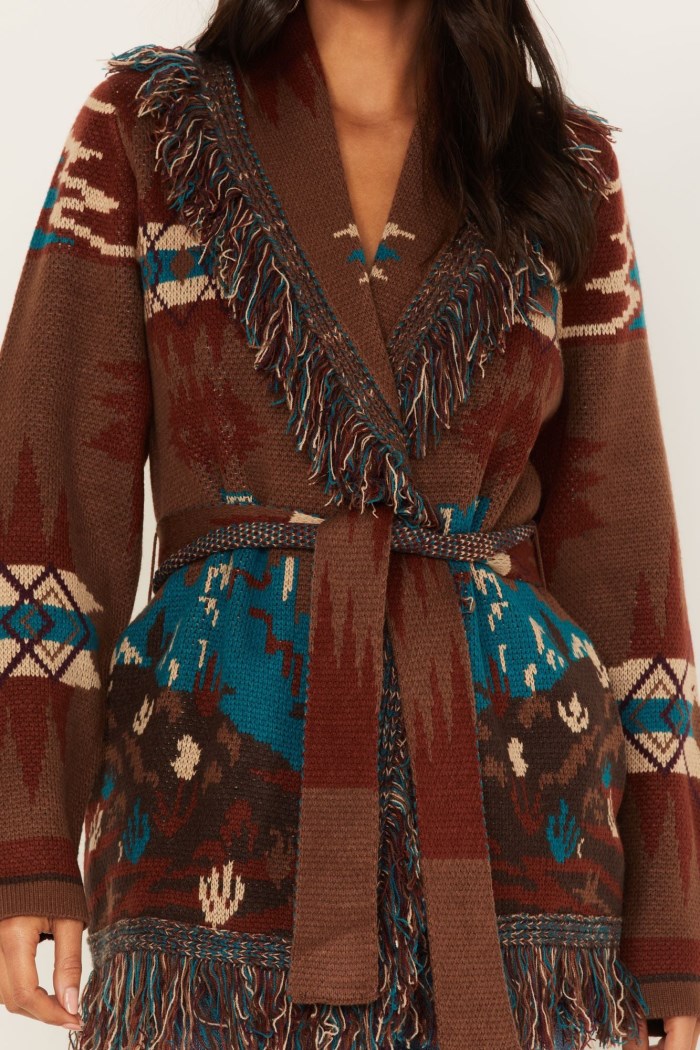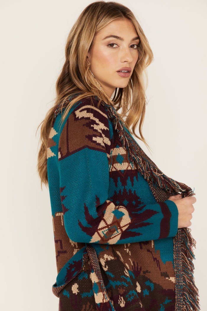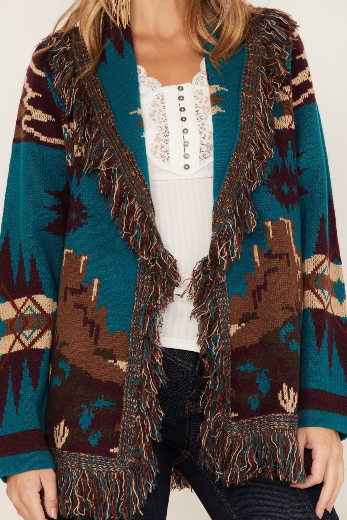 - Allover Southwestern knit fabrication