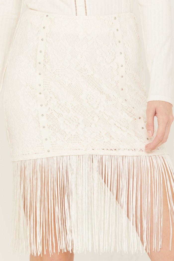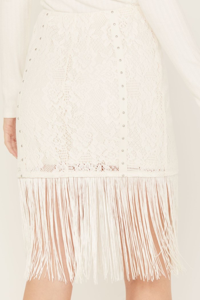 - Lace inset panels with studded accents
