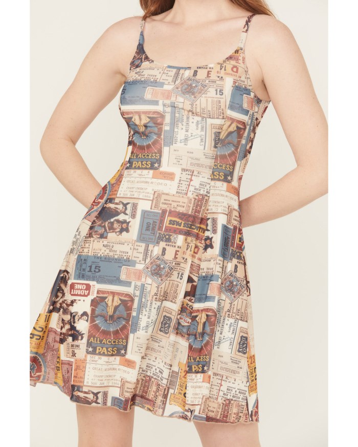 - Multicolored rodeo ticket design throughout